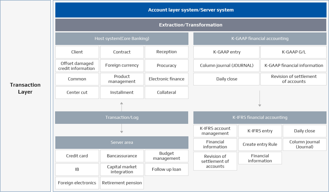 For the rapid implementation of the computing system following the introduction of International Accounting Standards, various pre-introduced financial institutions provide an optimal system that has been verified for accuracy and safety of K-IFRS standards.